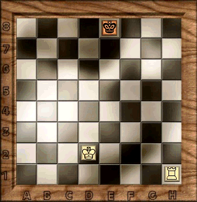 |  | Black to move.Black King on E8, White King on D2, White Rook on H1.